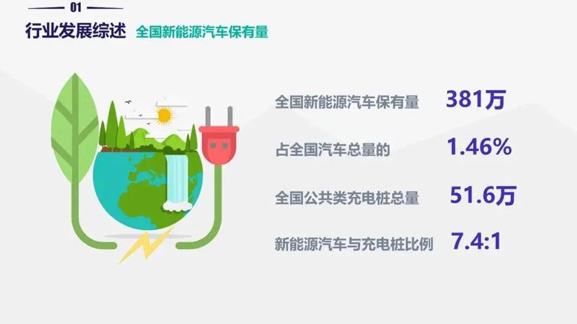 行業(yè)(ye)髮展(zhan)綜述,全國新能源(yuan)汽車保(bao)有量,全(quan)國新(xin)能(neng)源汽車(che)保(bao)有量381萬(wan),佔全(quan)國(guo)汽(qi)車(che)總(zong)量(liang)的(de)1.46%,全國(guo)公共(gong)類充電樁總量(liang)51.6萬(wan),新(xin)能(neng)源汽車與(yu)充(chong)電(dian)樁比(bi)例7:4:1